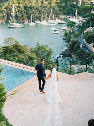 Nestled on the hillside, this enchanting venue provided the perfect backdrop for a romantic celebration overlooking the blue waters of the Mediterranean. The air was filled with the sweet fragrance of lush florals that adorned every corner, creating an atmosphere of pure romance. As the couple exchanged vows against the backdrop of the hillside views of Portofino, the intimate gathering reveled in the beauty of the moment. The celebration continued with a reception that seamlessly blended luxury and simplicity under the hotel's piazza, capturing the essence of the Italian charm. Splendido, a Belmond Hotel, became a haven for love, where the union of exquisite florals and panoramic views created an unforgettable destination wedding along the picturesque Italian Riviera.
